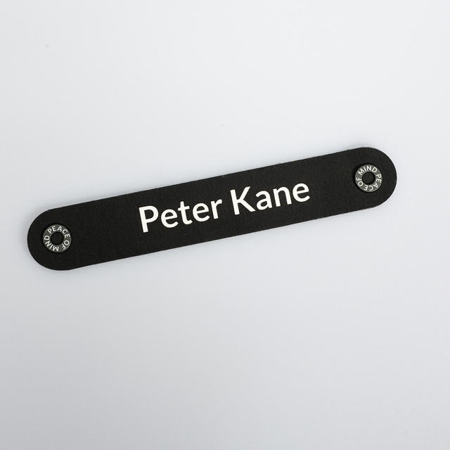 The Name tag comes in black or in blue. Choose the color you like, but we recommend to choose the same color as your HeadPeace or MindPeace Product for an integrated tone in tone look.
